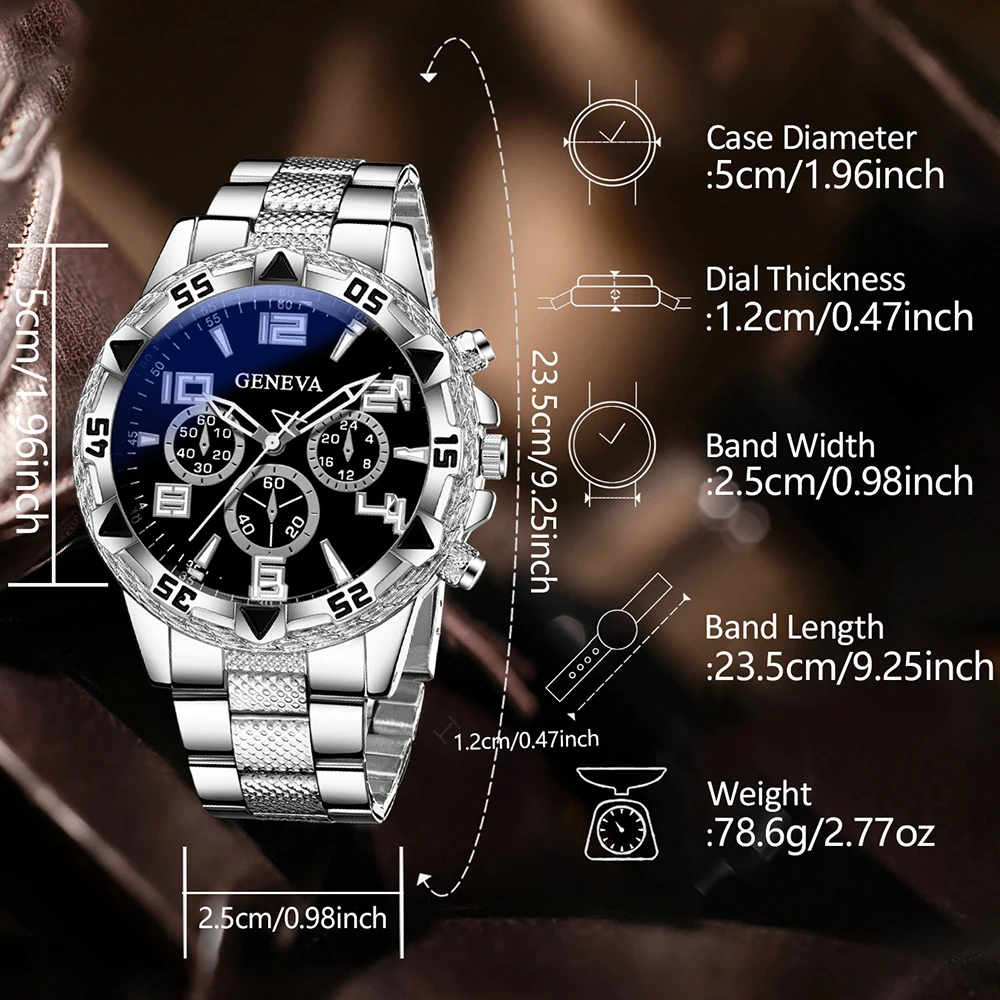 3PC Silver Business Men's Watch Set Luxury Fashion Black Digital Scale Dial Quartz Watch Bracelet Necklace Set Perfect Gift