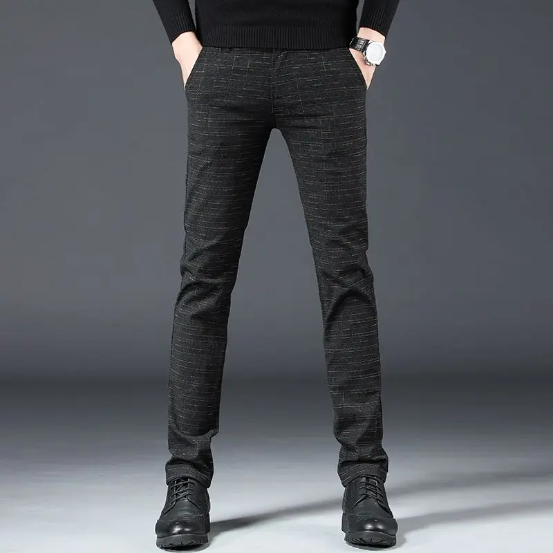 Fashion Men Slight Strech Korean Style Suit Pants Male Slim Fit Loose Straight Blazer Pants Look Taller Casual Black Trousers