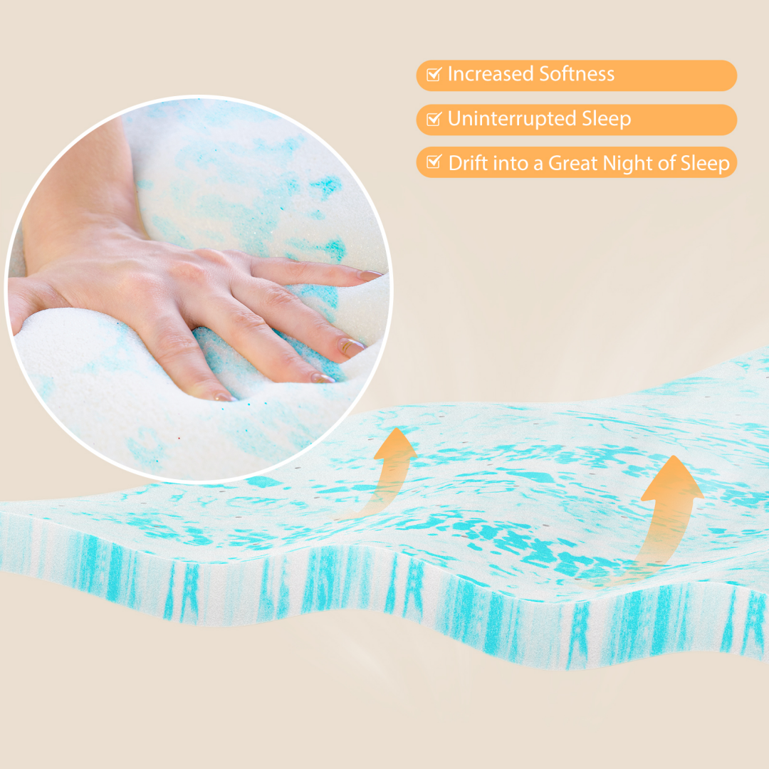 Memory Foam Mattress Topper With Cooling Gel, Pressure Relief & Breathable Comfort Bed Topper - VibraStore