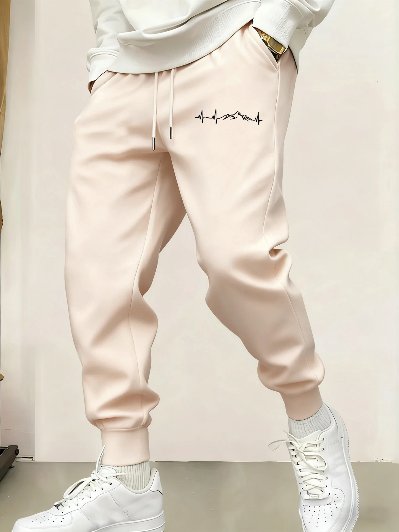 Mountain Heartbeat Creativity Print Sweatpants Men Comfy Fashion Trousers Pocket Simplicity Jogging Pant Autumn Sport Britches - VibraStore