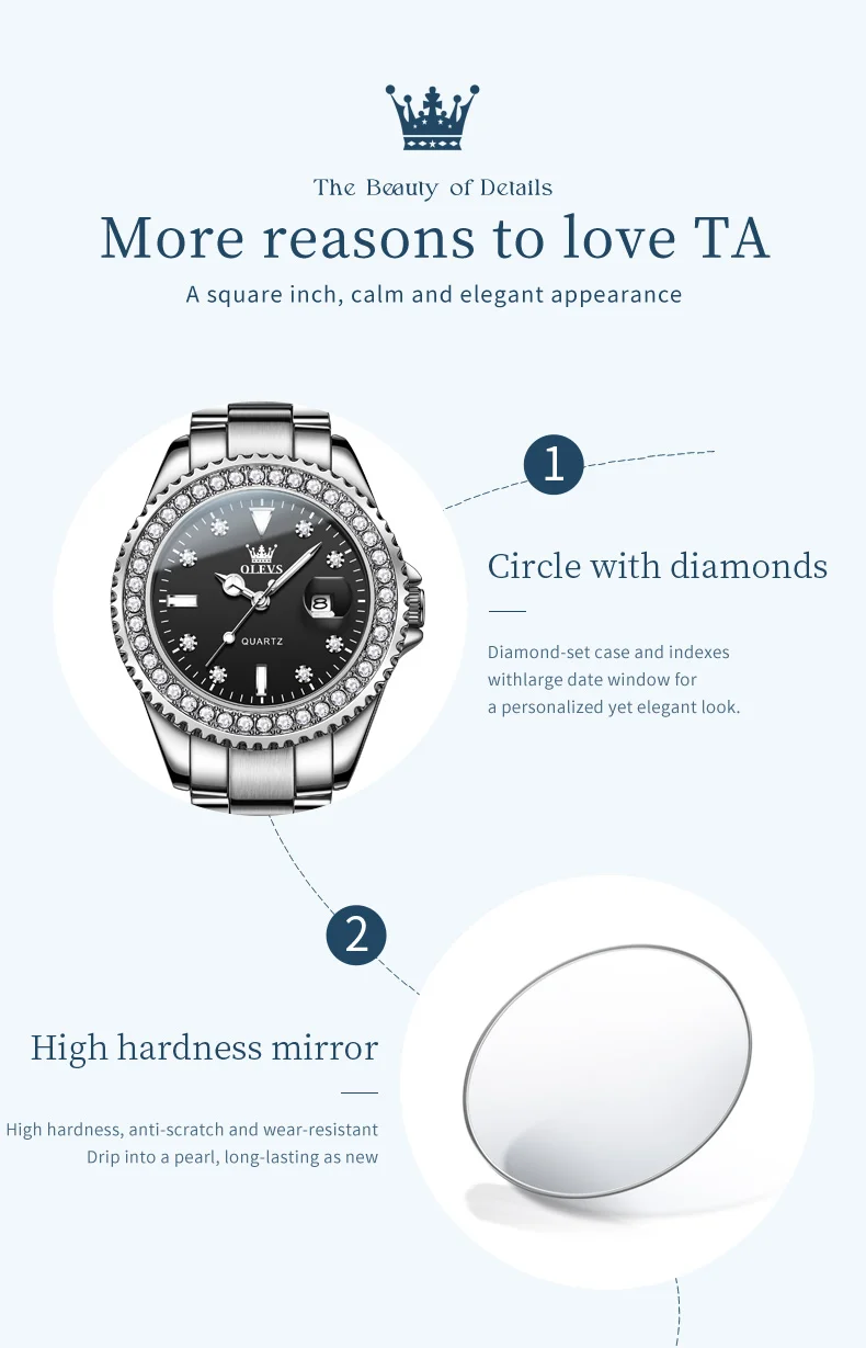 OLEVS Luxury Brand Quartz Watch for Women Steel Strap Waterproof Date Luminous Ladies Wristwatch Diamond Bezel Woman Watch 9945 - VibraStore