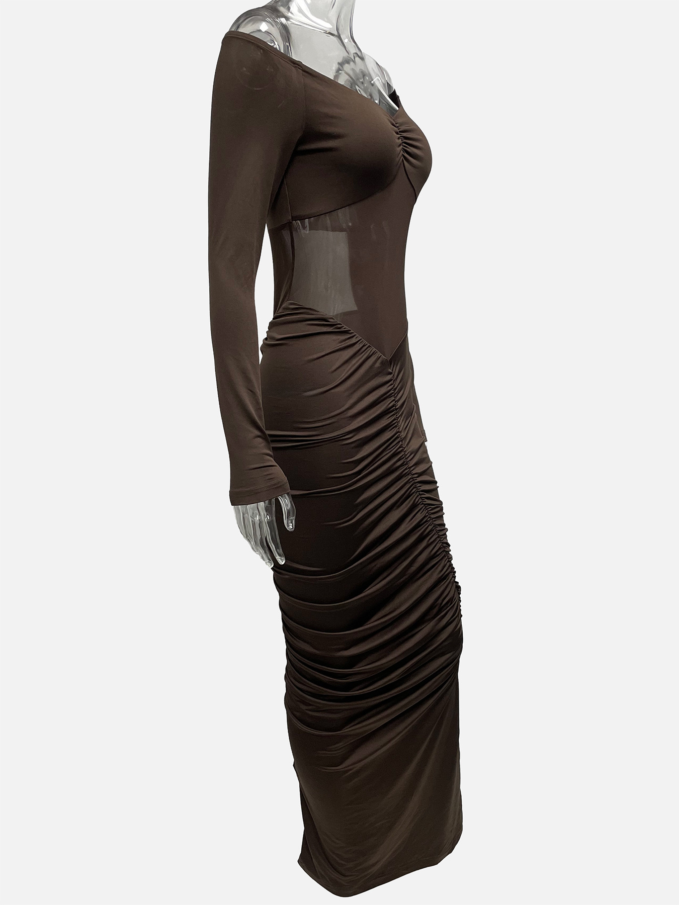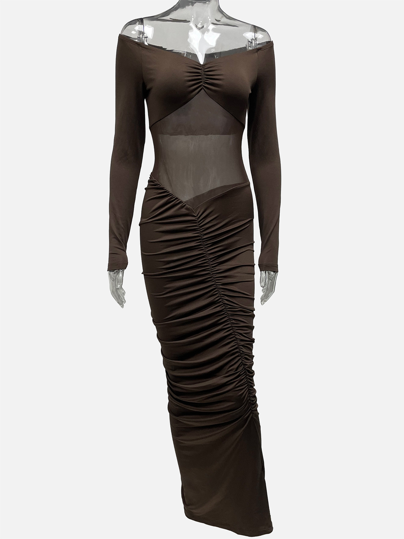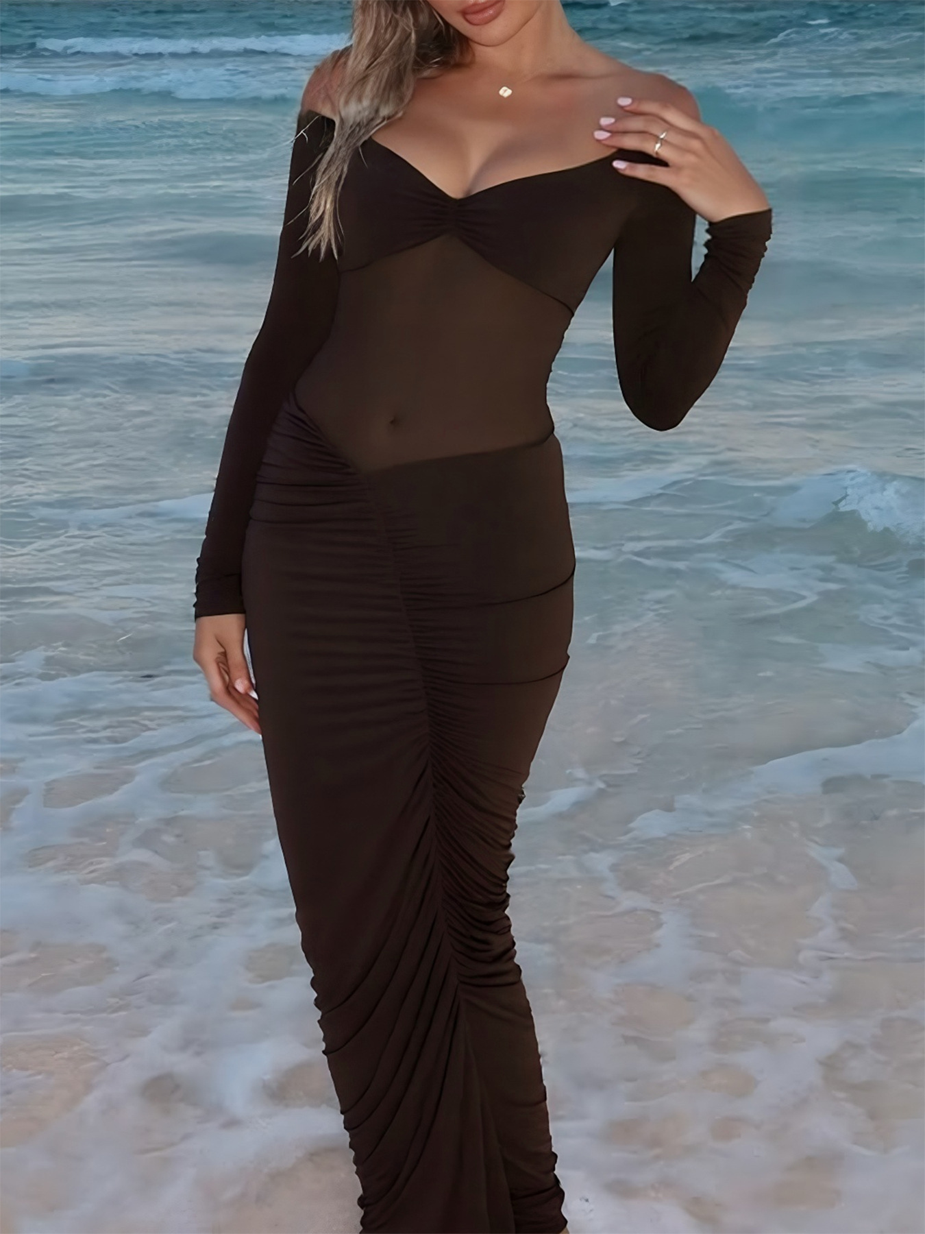 Seamless Long Sleeved Pleated Party Evening Gown For Gatherings